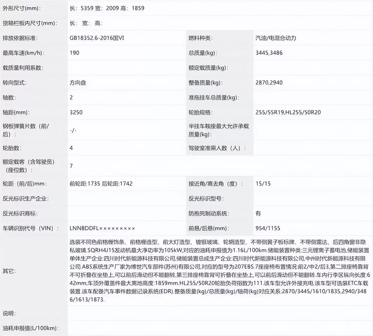 车身侧面,镀铬元素分布颇具巧思。侧窗装饰条、外门把手、外后视镜支架等部位的镀铬材质,不仅没有堆砌的违和感,反而勾勒出5359mm车身的修长比例。车尾的贯穿式尾灯与前脸设计遥相呼应,高位刹车灯纤细修长,踩下制动踏板时能快速提醒后车,进一步提升行车安全。申报信息显示,新车提供两种前包围样式、19/20英寸轮辋以及后排隐私玻璃选装,无论是偏好运动风格还是商务稳重感的用户,都能找到契合自身需求的配置方案。