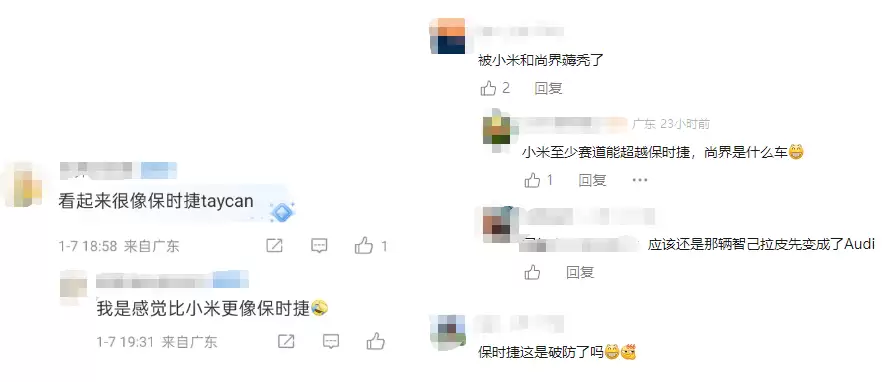网友制作的对比图显示,尚界Z7与小米SU7、保时捷经典车型在车身比例、车灯造型等细节上存在视觉重叠,部分评论戏称其为“保时界”。值得注意的是,尚界官方在前期的宣传中曾明确表示,Z7的外观设计可“比肩欧洲某款百万级性能车”,这种表述被解读为对豪华品牌设计语言的致敬。保时捷中国随后发布的2026年品牌宣传片中,结尾处“无可替代”的宣言被外界视为对相关争议的间接回应。