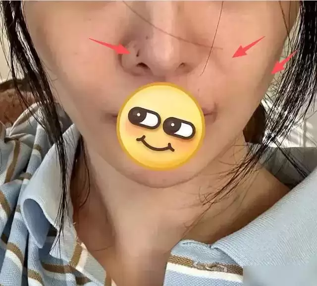 仔细看郑爽的皮肤状态真算不上很好,依旧很瘦,鼻头还有疑似抠痘痘抠破的痕迹,法令纹也很明显,头发看着还有些油。