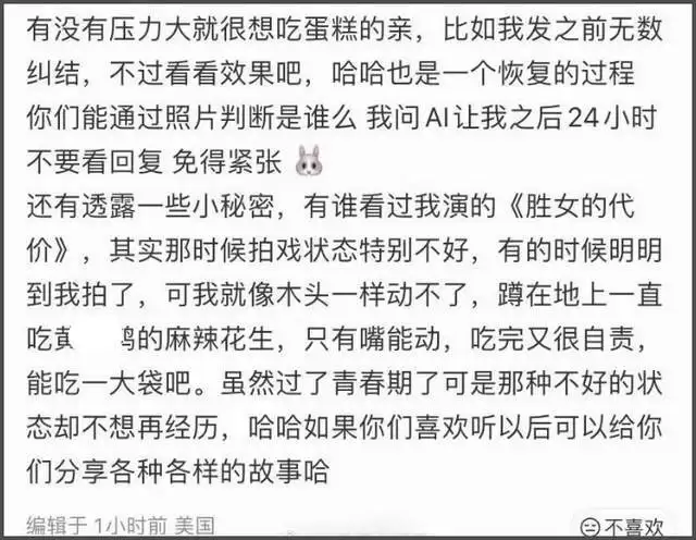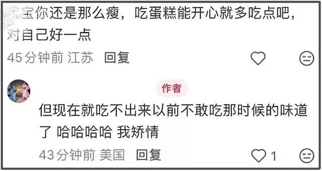 有粉丝说她太瘦了,希望能多吃点蛋糕,郑爽还回应说现在吃不出当年“想吃不敢吃”的味道,说来说去一直在“忆往昔”,吐槽在娱乐圈辛苦,不能吃想吃的,还得控制食欲。