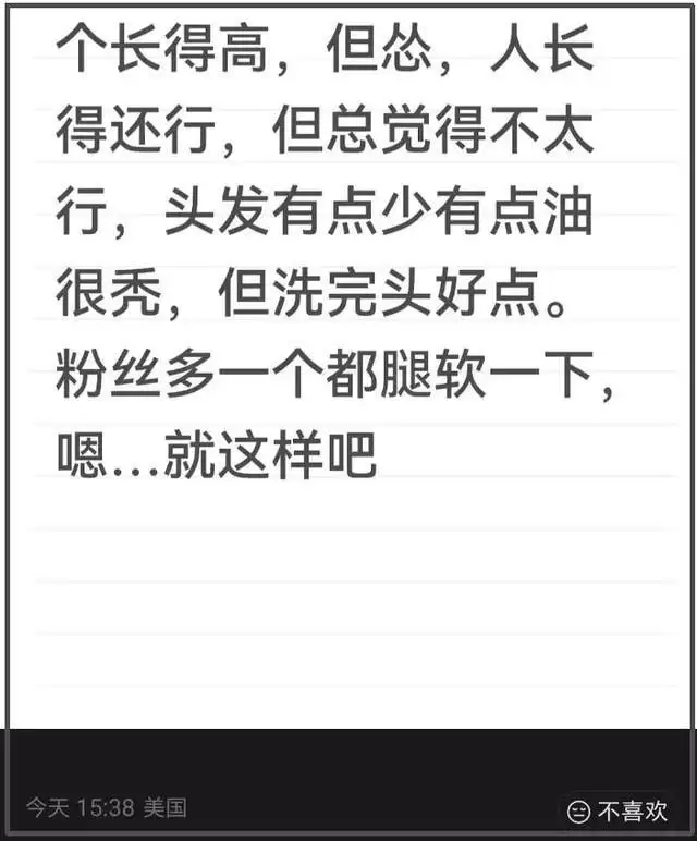 郑爽还发文自嘲,说自己个子长得高,但是怂,脸还行但不自信,头发有点少有点油很秃,要不是郑爽在评论区认领了自己,这一顿描述谁能联想到是当年的郑爽呢?明星还是包装得太好了。