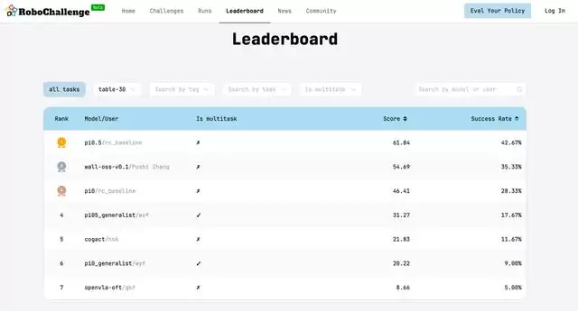 这一结果释放出强烈的信号。很长一段时间内,中国具身智能产业陷入“大脑缺位”的争议:我们有较强的本体结构设计和运控算法,但很难让机器人真正“用脑思考”,自主与物理世界交互,进而带来创造生产力的可能。但现在,中国具身智能模型已经与海外顶级模型同台共舞。