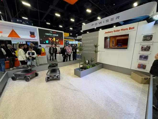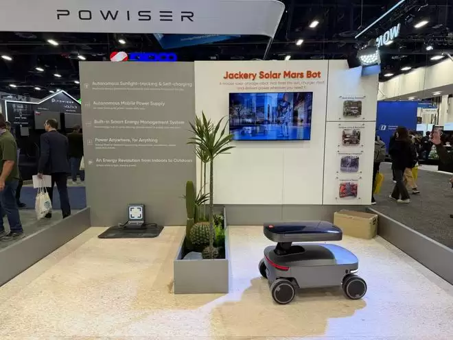 华宝新能带来的“超级单品”——光储火星机器人Jackery Solar Mars Bot,恰好精准回应了这一行业需求,成为展台当之无愧的“流量担当”。