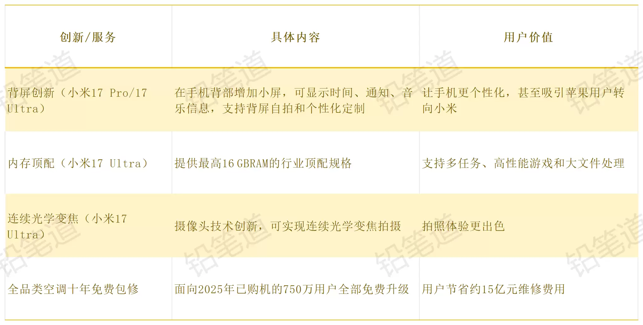 小米在高端化方面进行了诸多实践,并非单纯追求高价,而是注重提供高端体验。例如小米17 Pro的背屏创新,空调推出十年免费保修计划等。然而,围绕小米的争议,有事