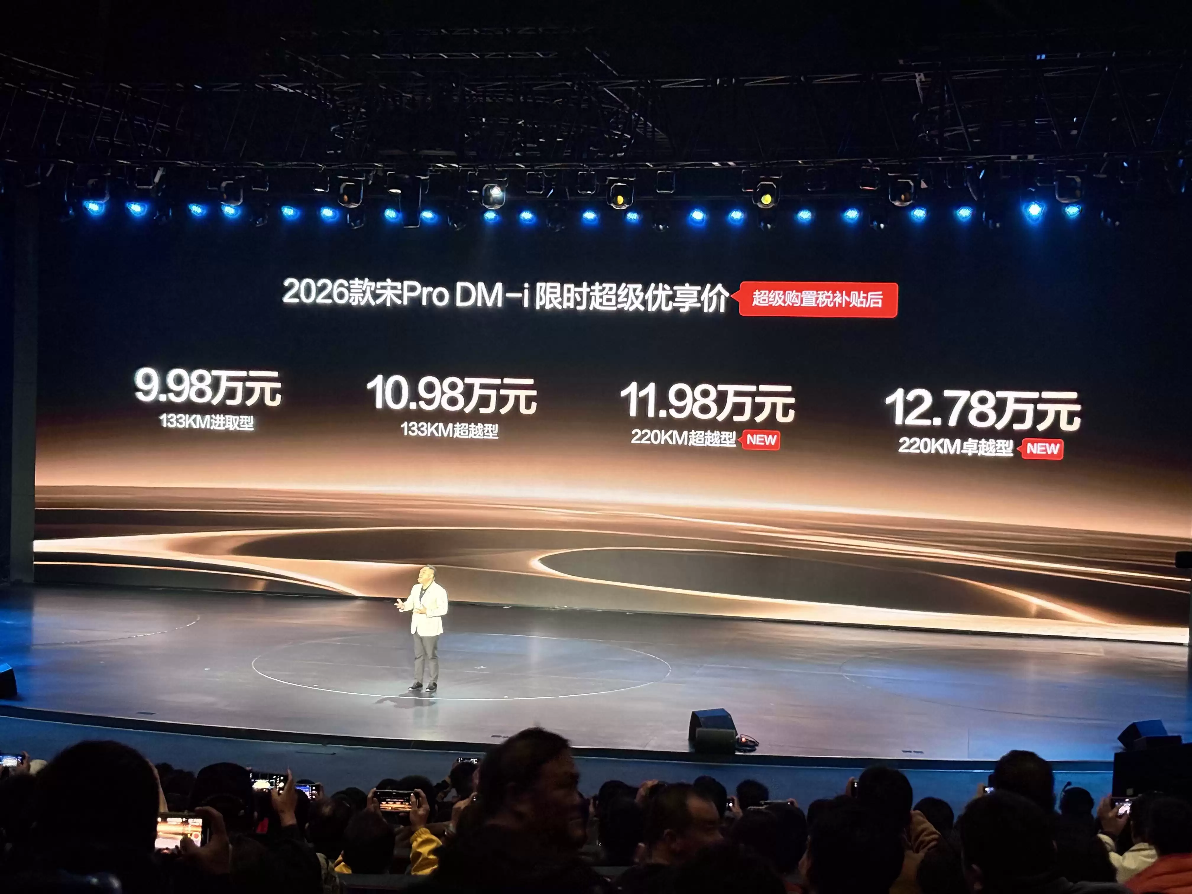 在紧凑型插混SUV市场,比亚迪凭借技术创新再次掀起波澜。2026款宋Pro DM-i长续航版车型正式上市,提供220KM超越型与卓越型两款配置,补贴后售价分别为11.98万元和12.78万元。新车以220公里的CLTC纯电续航里程与1600公里的综合续航能力,精准直击用户用车焦虑;同时,其3.2L/100公里的亏电油耗表现,重塑了同级车型的能效标杆。