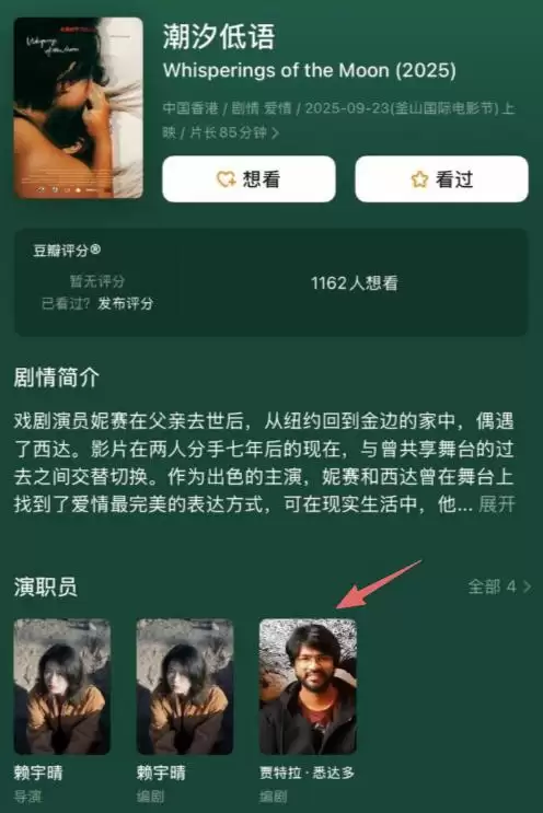 据悉,赖宇晴这次入围的作品便是《潮汐低语》,虽然她才是导演和编剧,但座谈时依然是印度男坐在中间,可见印度男在团队中的地位颇高,赖宇晴也很尊重她。