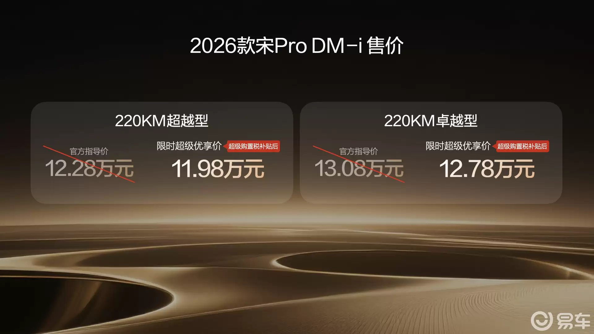 宋Pro DM-i 2026款发布:220km长续航+高配开启家庭出行新体验