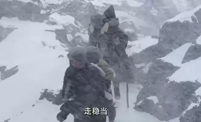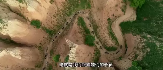 看着队伍在山间行走时的俯拍景色,不禁感叹是真壮观啊,山势险峻,气候恶劣,观众有了更深的代入感。还有陕北秧歌队的出现,让人感受到了鲜明的地方文化。