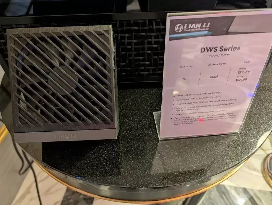 全新的DWS系列工作站电源预计将在今年第二季度上市。该系列包含1300W和1600W两个版本,均取得了80 PLUS白金转换效率认证,整机峰值负载偏移耐受能力达到了235%,可在50℃的环境温度下稳定工作。