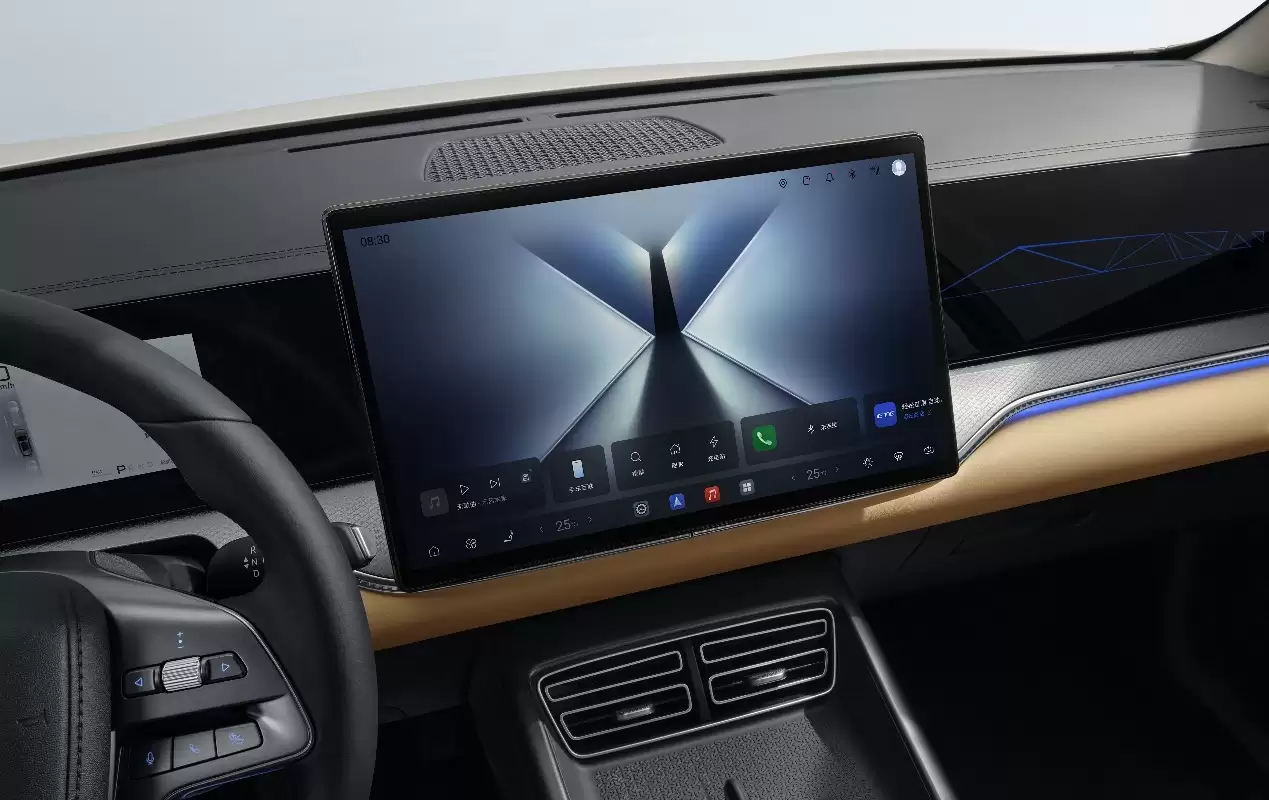 新车在外观设计上延续了现款车型的轮廓风格,车身尺寸保持为4735×1860×1690毫米,轴距为2712毫米。配置升级成为此次更新的主要亮点:全系换装19英寸轮毂,新增了全景天窗与电动遮阳帘,外观配色在原有的五款基础色上,额外增加了星河米和翠峰绿两种新选择。内饰方面提供琥珀棕与暮云灰双色方案,保留了8.8英寸全液晶仪表和电子怀挡设计,同时将中控屏升级至15.6英寸,并搭载了8扬声器音响系统,支持5G网络连接,新增了游戏中心、无线K歌等娱乐功能。