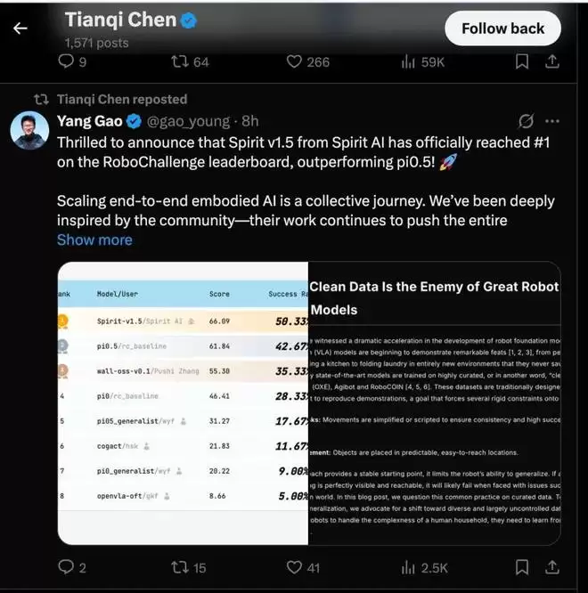RoboChallenge 的榜首位置或许会轮换,数据的记录终将被刷新,但 Spirit v1.5 的出现具有明确的界碑意义: