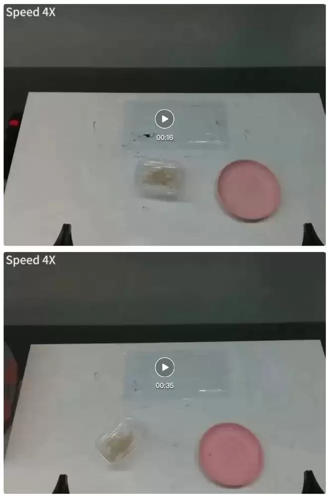 Spirit v1.5 vs Pi0.5 视频对比。上:Spirit v1.5,下:Pi0.5。