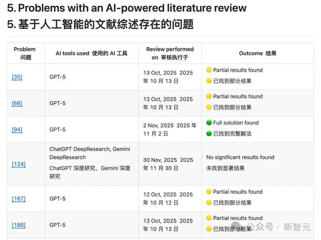 陶哲轩还专门列了「AI-powered literature review(AI驱动的文献回顾)」一类:AI被用来搜索是否已有结果、是否存在误判Open的情况。