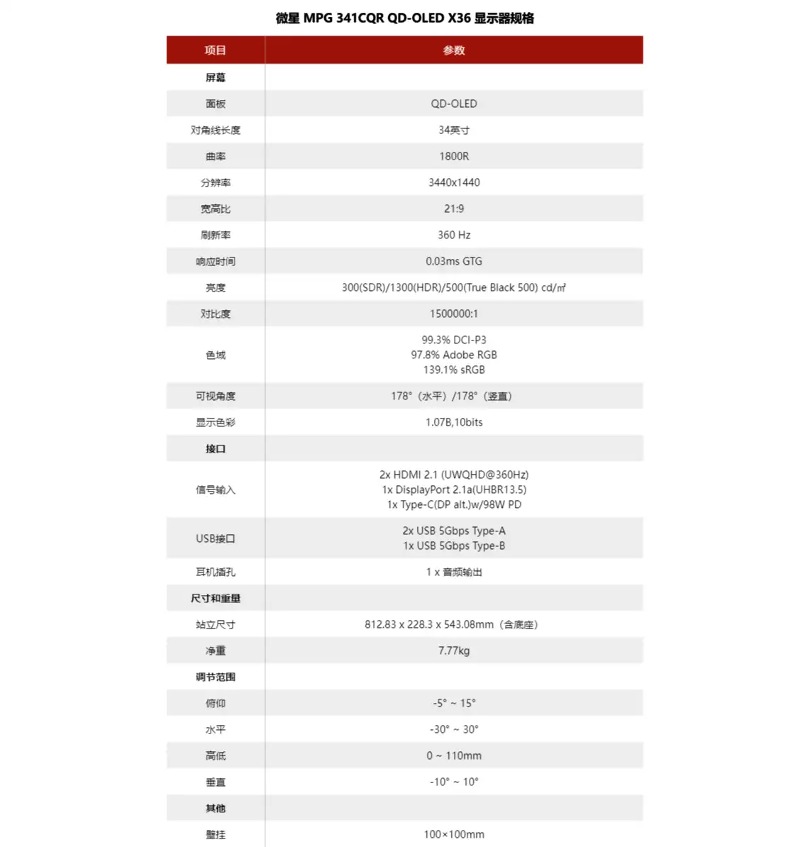 微星MPG 341CQR即将开售:34英寸QD-OLED高刷鱼屏,首发价6999元