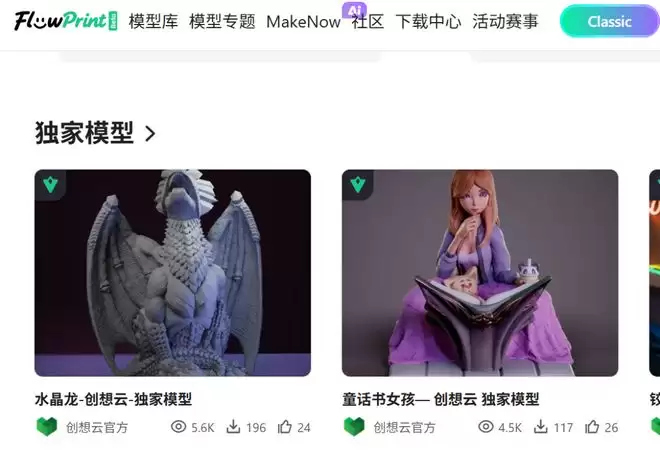 flowprint是由创想云进化而来,作为一体化3D打印平台,致力于降低3D打印门槛,让更多人爱上3D打印,丰富、便捷、有趣是平台的特色。“丰富”即种类齐全的3D模型库、“便捷”即云端切片及远程打印、“有趣”即活跃的3D打印社区。