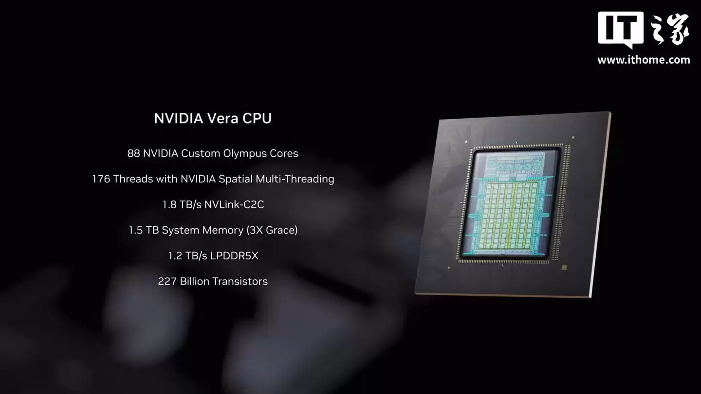 Rubin架构以天文学家薇拉·鲁宾(Vera Rubin)的名字命名,由六款协同工作的独立芯片组成。该系统的核心是Rubin GPU,并配备了全新设计的Vera CPU,专为“智能体推理”任务而优化。