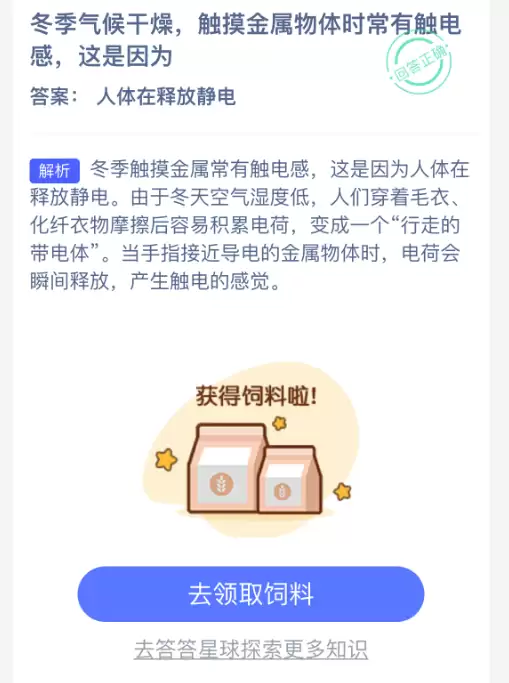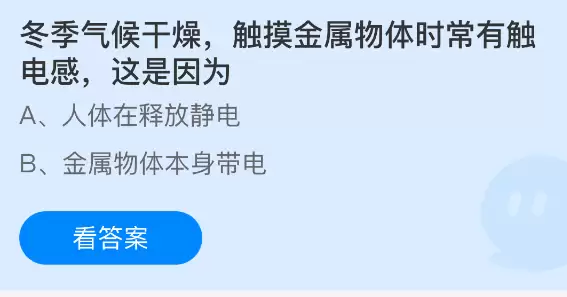 冬季触摸金属为何容易静电?支付宝蚂蚁庄园1.11答案