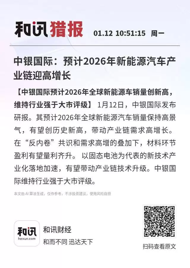 中银国际:2026年新能源汽车销量有望创新高,产业链迎新机遇