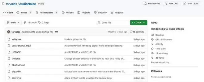 GitHub 地址:https://github.com/torvalds/AudioNoise