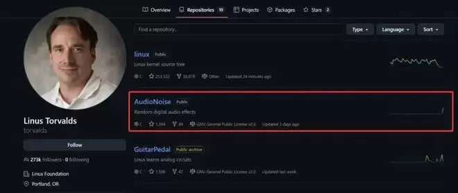 大神在 GitHub 上发布了一个名叫 AudioNoise 的新项目,和 Linux 并列。