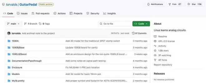 GitHub 地址:https://github.com/torvalds/GuitarPedal