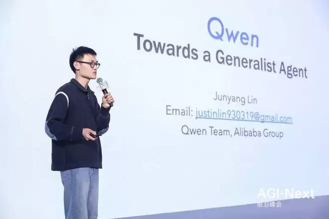阿里云通义千问(Qwen)的林俊旸则带来了一股浓厚的产品主义气息。作为开源界的「卷王」,他直言「模型即产品」,并分享了 Qwen 如何通过开源社区的反馈完成自我进化的故事。