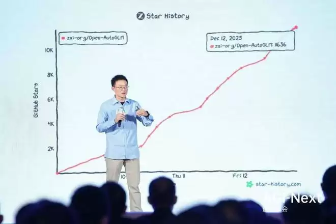 在移动端 Agent 方面,唐杰展示了AutoGLM的野心。未来的 AI 不应该只是一个聊天框,而应该是一个渗透到设备底层的幽灵。他们采用了一种「API + GUI」的混合模式:对 AI 友好的环节走 API,对人类友好的环节则模拟人手点击 GUI(图形用户界面)。演示中,AutoGLM 可以在手机后台静默执行长达 40 步的复杂操作 —— 从查询攻略、打开地图、比价、到最终下单订票,一气呵成。