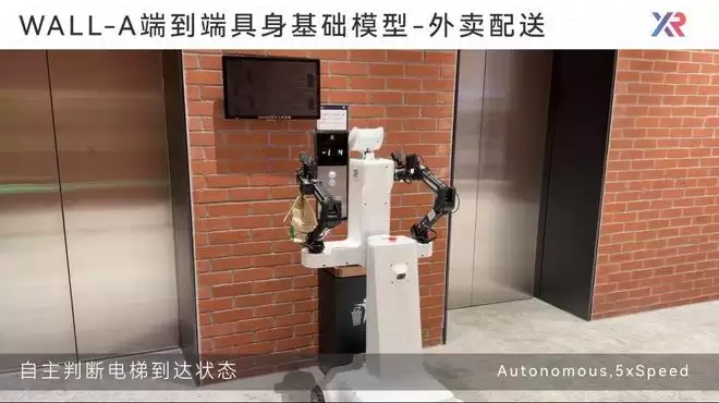 自变量机器人“量子一号”在外卖配送与纸箱回收中,不仅要在户外面对强风干扰或视线遮挡完成外卖纸盒的拆解与回收投递,还能够自主穿越楼宇大门、使用电梯进行室内配送。