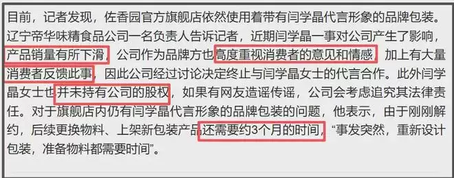 说起来,佐香园品牌负责人接受媒体采访时,还提到了为什么不下架印有闫学晶照片的产品,采访信息量不小,这里简单总结一下。