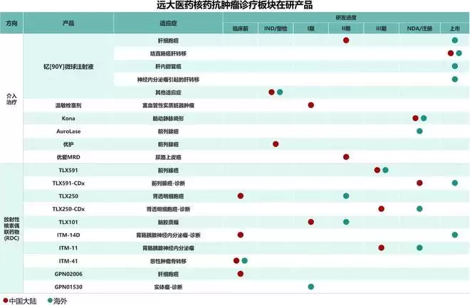 产品方面,围绕肿瘤诊疗一体化的治疗理念,公司在研发注册阶段已储备16款创新产品,涵盖68Ga、177Lu、131I、90Y、89Zr在内的5种关键放射性核素,覆盖肝癌、前列腺癌、脑癌等7个重大癌种;早期研发阶段以RDC药物为主,产品储备达10余款,产品种类涵盖诊断和治疗两类核素药物,可为患者提供多适应症治疗选择、多手段且诊疗一体化的全球领先的抗肿瘤方案。