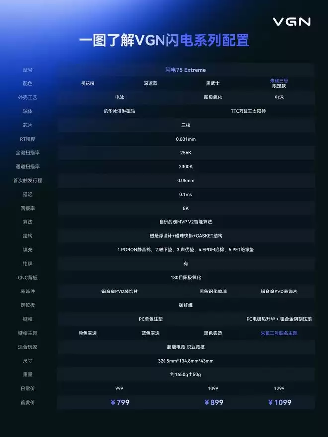 VGN闪极75+键盘登场:可选蓝朱雀与三号火联名限定版