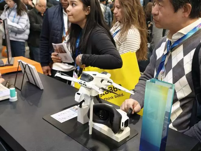 更有意思的是还得是这款把「全景逻辑」延伸到了天空的影翎 Antigravity A1,它在现场吸引大量观众排队体验沉浸式飞行。而它的核心卖点也与影石Insta 360的其他产品一致:超低门槛。
