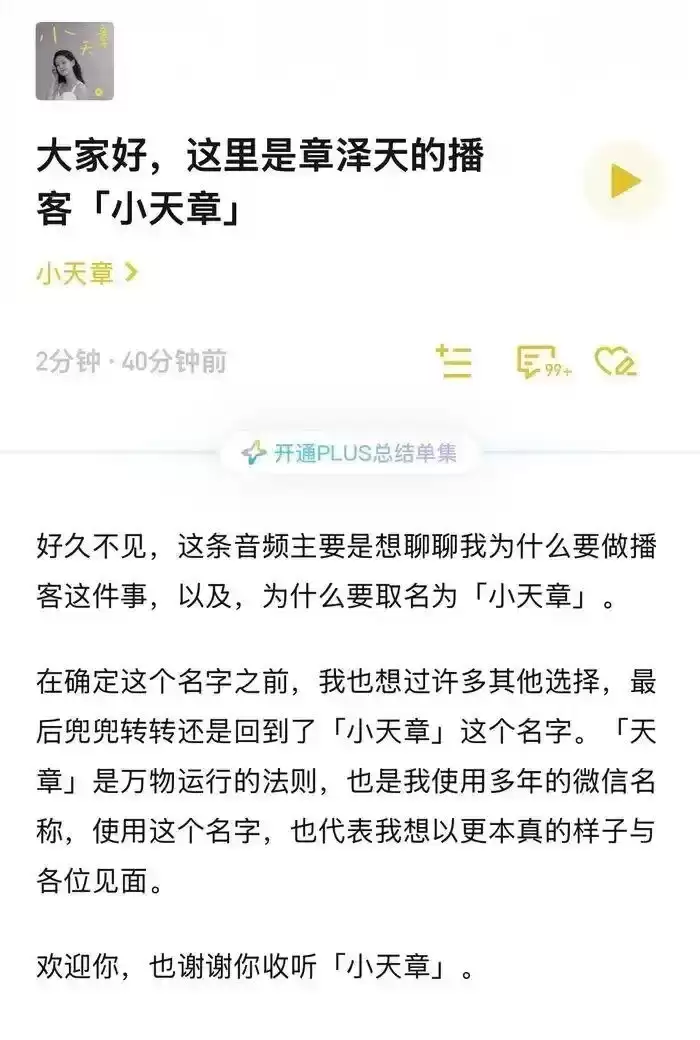章泽天“小章”播客上线小红书的思考与对话分享