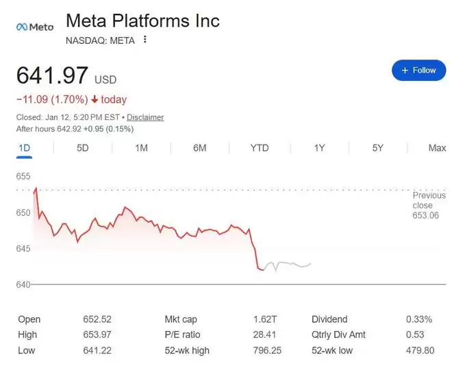 本周一,Powell McCormick的任命未能缓解投资者担忧,Meta股价午盘跌不足0.9%。在媒体称Meta计划对元宇宙相关业务Reality Labs裁员约10%后,Meta美股尾盘跌幅扩大,收跌1.7%,在上周五反弹后回落,刷新12月3日以来一个多月收盘低位。