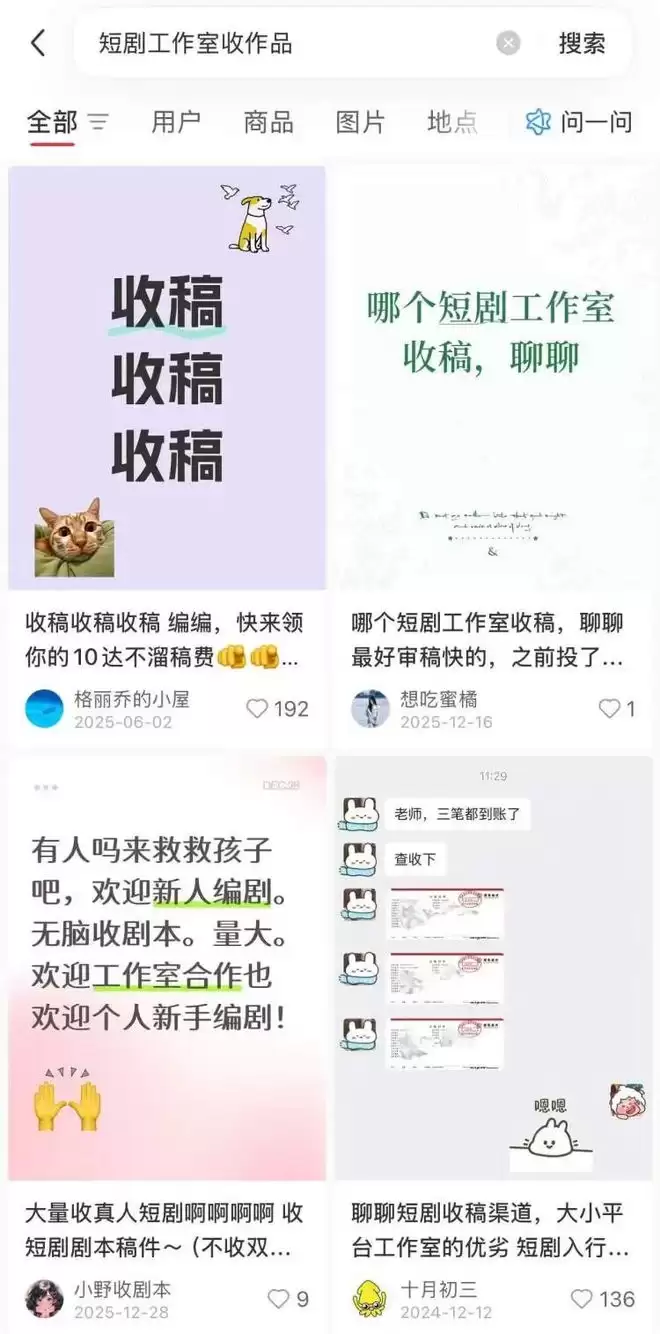 短剧工作室不仅创作剧本,同时也对外接受投稿