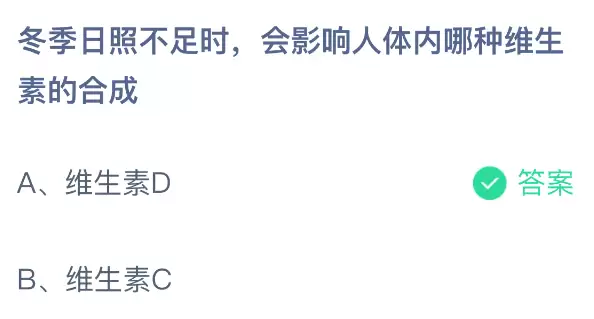 冬季日晒不足影响哪种维生素合成?最新答案揭晓