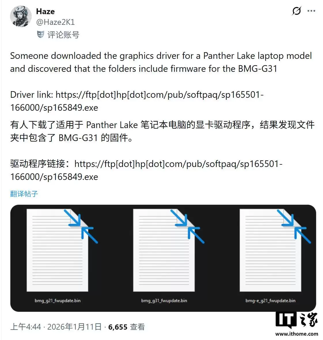IT之家1月13日消息,据用户@Haze2K1于1月11日在社交平台X发布的消息称,其在英特尔驱动程序固件包中,发现了代号为“BMG-G31”的GPU核心信息。这表明,搭载该核心的消费级显卡(即传闻中的Arc B770)的初步驱动适配工作已经展开。