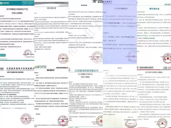 除上市公司外,众多中小企业也相继加入调价行列。厦门宏发、南充溢辉电子、浙江玖维电子、安徽富捷电子、宁波鼎声微电、江西昶龙科技及深圳合科泰电子等一批中小型厂商相继宣布调价,调整幅度普遍在5%-20%之间,覆盖了厚膜贴片电阻、特种晶片电阻及半导体器件等多个品类。