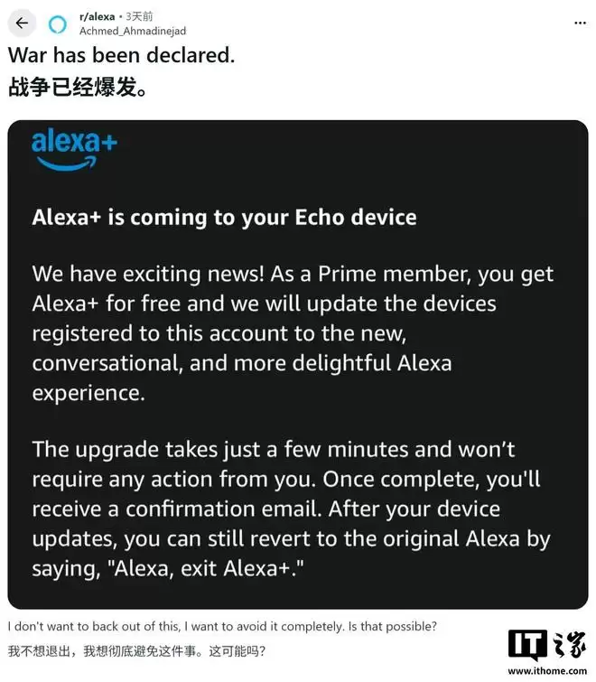 不过,社区对此次升级的反馈目前以负面为主。部分坚持使用旧版Alexa的用户指出了新版的诸多缺陷,包括不喜欢新版AI的语音音色和说话态度,以及Alexa Plus处理查询时的等待时间明显变长。
