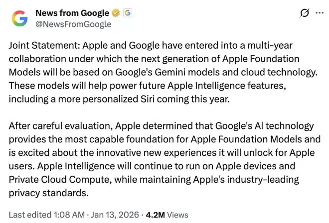 这场价值数十亿美元、为期多年的合作,有望成为苹果追赶AI浪潮的关键一步,更是谷歌在对抗OpenAI战役中赢下的标志性一役。巨头合纵连横,全球AI竞赛进入资源整合与生态对决的新阶段。