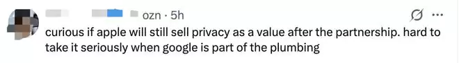 有网友则对合作背后的隐私问题表示质疑:“很好奇苹果在合作之后是否还会把隐私作为卖点。毕竟谷歌也参与其中,很难让人信服。”对此,谷歌和苹果的联合声明提到,这些模型将继续在苹果设备和该公司的私有云计算平台上运行。