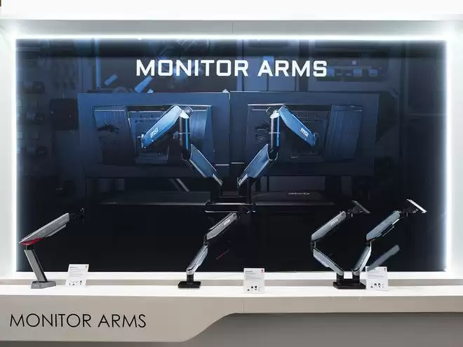 据了解,微星此次推出的支架产品线覆盖了MPG、MAG及PRO系列,均提供单屏与双屏型号,能够支持最重20公斤、最大49英寸的显示器。