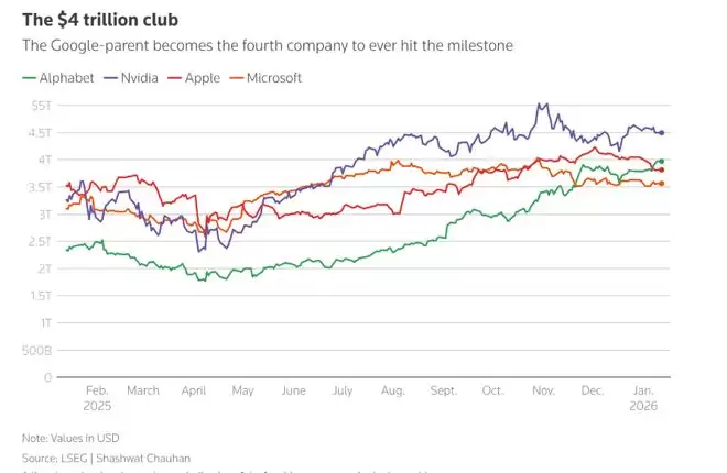 谷歌母公司Alphabet市值首次突破4万亿美元超级大关