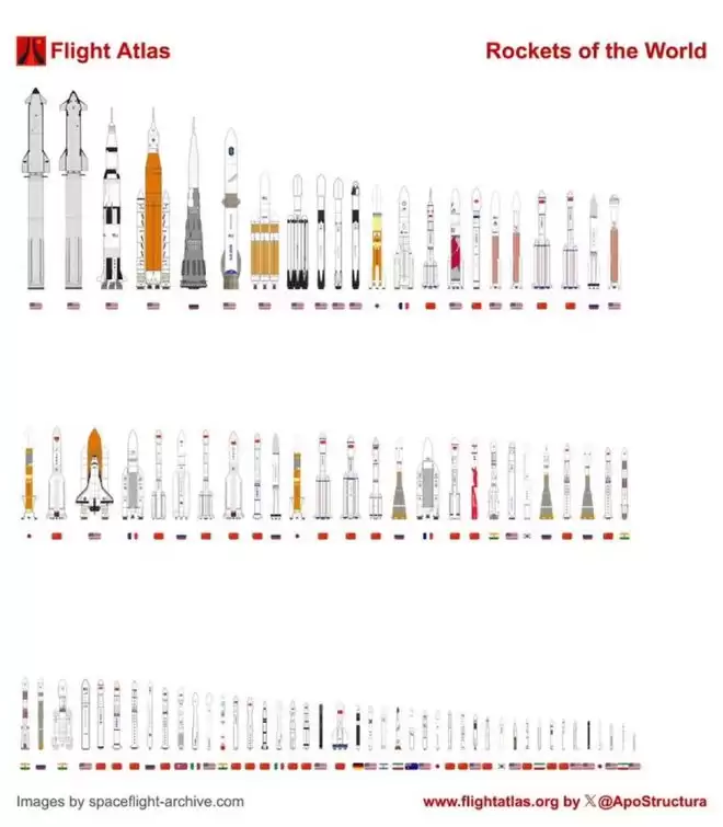 1月13日,特斯拉CEO埃隆·马斯克在社交平台X上转发了一张来自全球火箭发射数据可视化平台Flight Atlas的图片,并配文指出,SpaceX的星舰(Starship)是目前为止人类建造过的体积最大的飞行器。