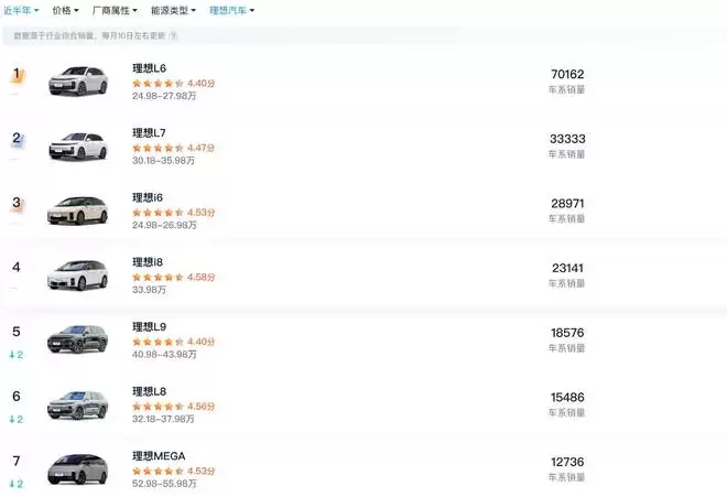▲ 理想各车型的近半年销量 数据来源:汽车之家
