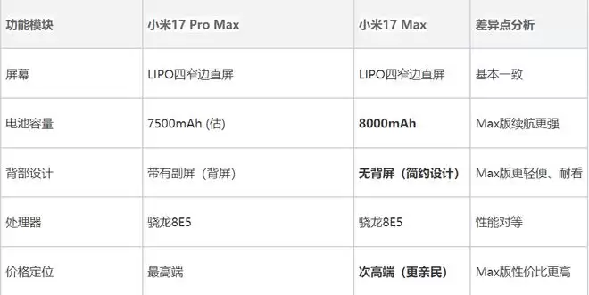 说到这里很多朋友会问,小米17 Max和Pro Max怎么选?其实小米的刀法非常精准。