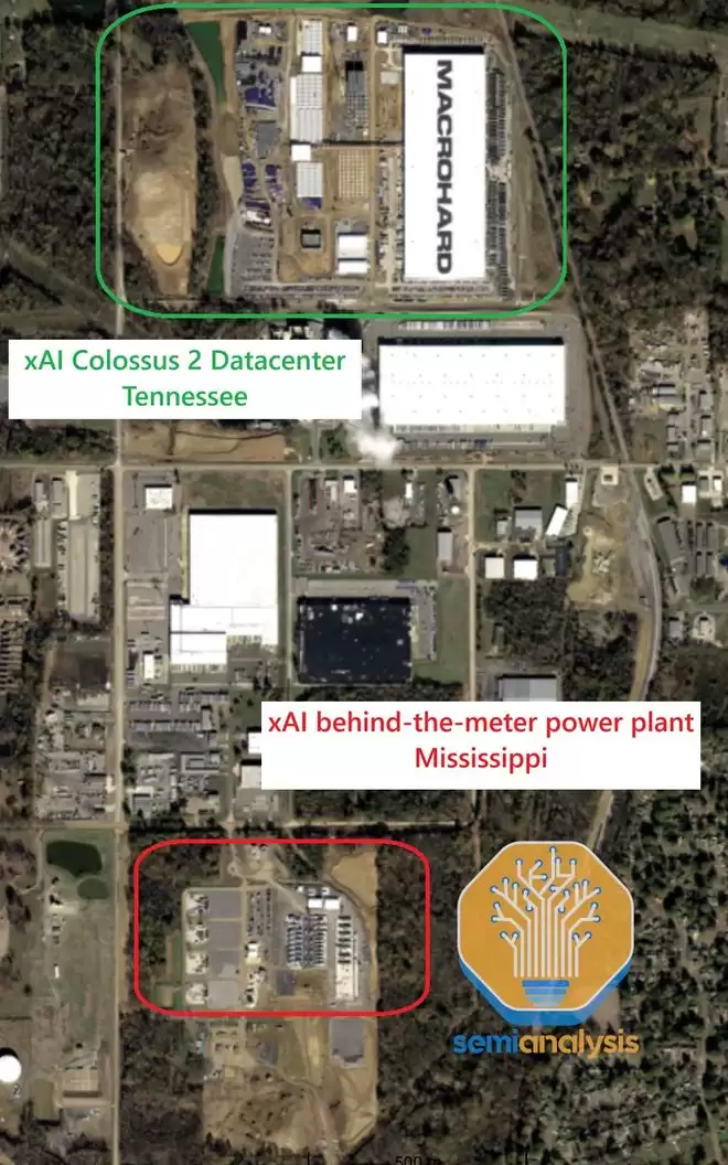 为了实现「百万芯片」的宏伟蓝图,马斯克大手一挥,在孟菲斯和密西西比的交界处建了一座发电厂。