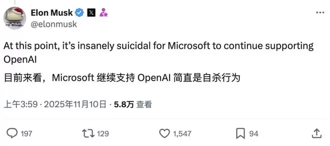 马斯克在2025年的最后一天也不消停,连夜对微软贴脸开大: