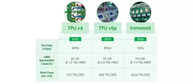 他们最新推出的第七代芯片Ironwood,硬生生把能效比拉到了第一代的30倍。