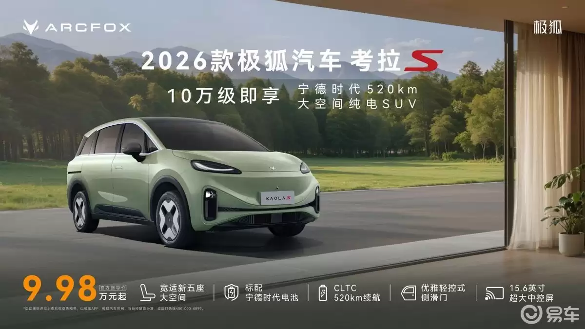 在纯电家用SUV市场,2026款极狐汽车考拉S以10万级的价格区间强势登场,为消费者带来兼具长续航、大空间、高智能与高品质的全新选择。此次共推出520 AIR、520 PRO、520 MAX三个型号,最新指导价分别为9.98万、10.98万、11.98万,上市即交付,让用户无需等待即可开启纯电出行新体验。